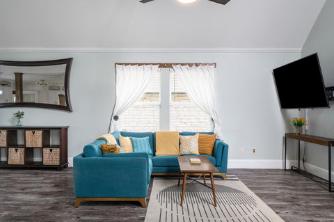 Nestled in a quiet neighborhood is sweet Casa Blue. She's definitely the bell of the ball with an open living area and 4 spacious bedrooms. Tha backyard offers something for everyone. There's a reason this place is usually booked.